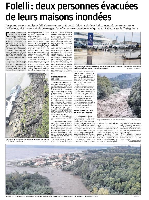 Folelli : deux personnes évacuées de leurs maisons inondées