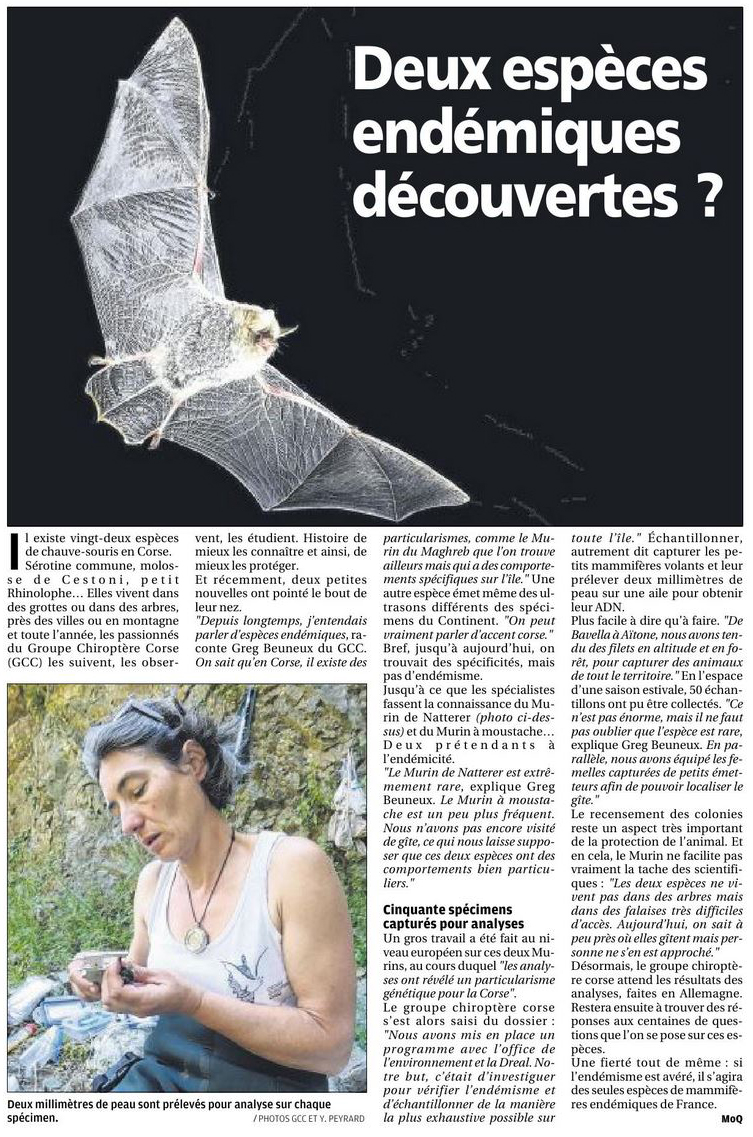 - Les études et amélioration des connaissances sur les chauves-souris en Corse