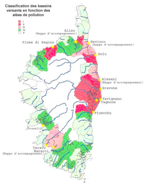 Dans le cadre de la Directive Cadre sur l’Eau qui impose aux Etats membres de l’Union européenne d’atteindre le bon état écologique et chimique pour 2015, un suivi des produits phytosanitaires a été réalisé sur une période de 5 ans, de 2003 à 2007, sur trois bassins versants prioritaires (Prunelli, Tavignano et Fium Orbo).